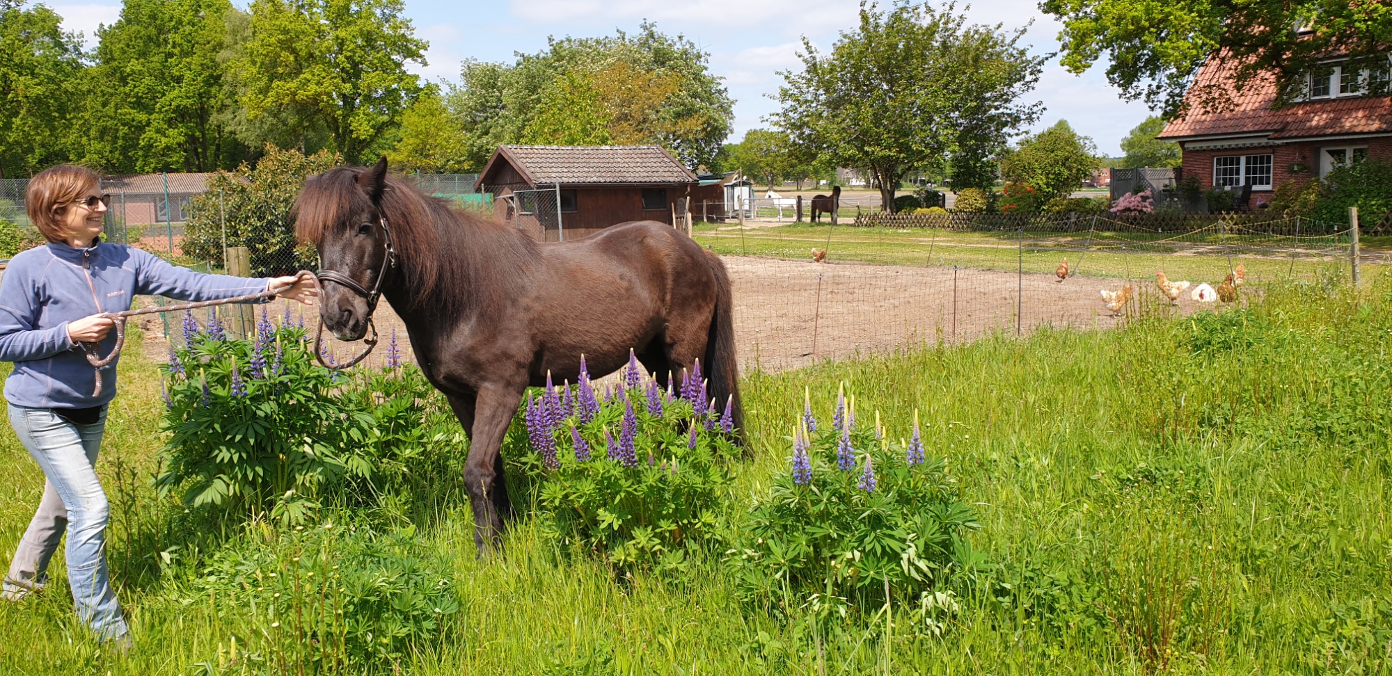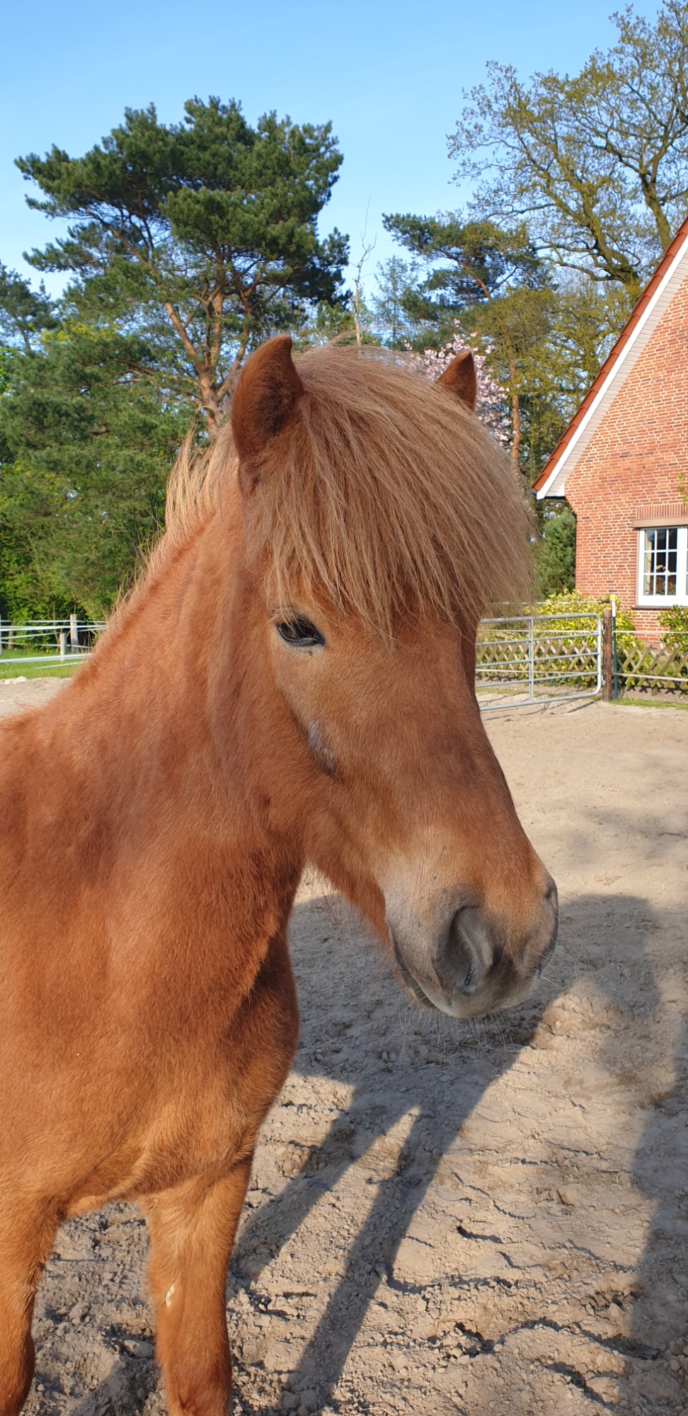 Pferde habe ich seit über 25 Jahren. Zurzeit leben bei uns drei Islandpferde und ein Shetty. Drei weitere Pferde wohnen in Pension bei uns.